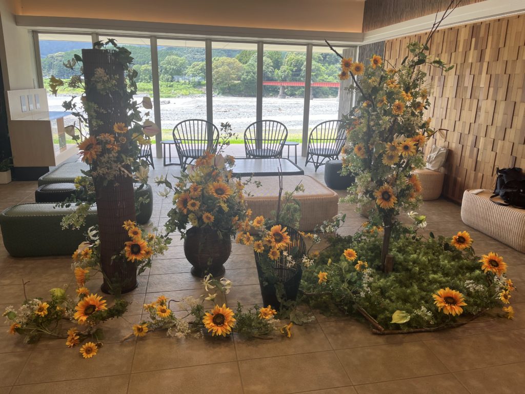 『大井川鐵道 川根温泉ホテル』さま 「ヒマワリ装飾ディスプレイ」 2025年7月18日、『大井川鐵道 川根温泉ホテル』さまに「ヒマワリ装飾ディスプレイ」を納品させて頂きました。 この他にも「ハイビスカス装飾ディスプレイ」、「グリーン・笹(ささ)・竹(たけ)装飾ディスプレイ」をご用意しております。店内ディスプレイやウィンドウディスプレイ、ブース装飾のレンタルをご用命の際には、どうぞお気軽にお問い合わせください。